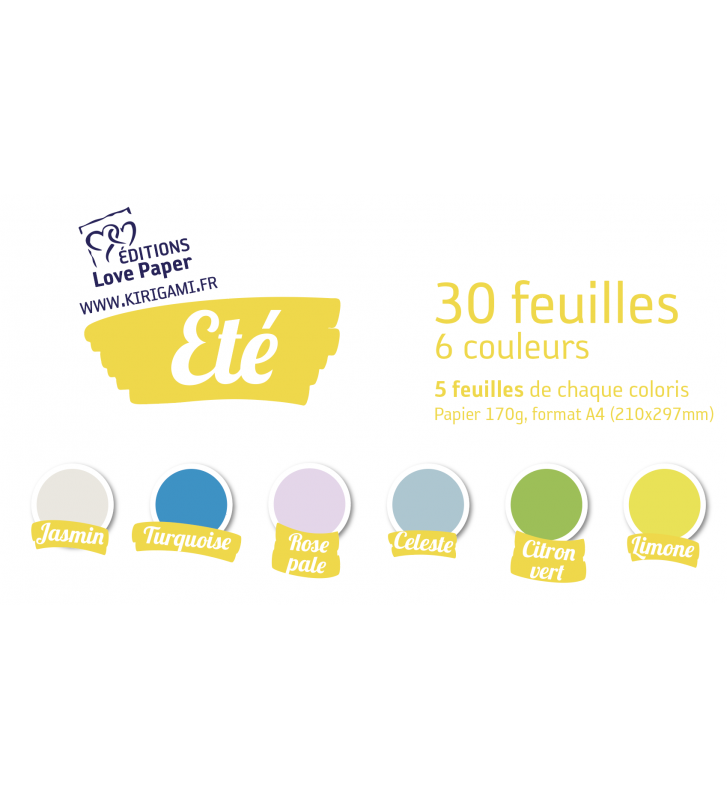 Nuances d'été - 30 feuilles A4 - 170 g/m² - papier de création pour kirigami et loisir créatif - 21F275