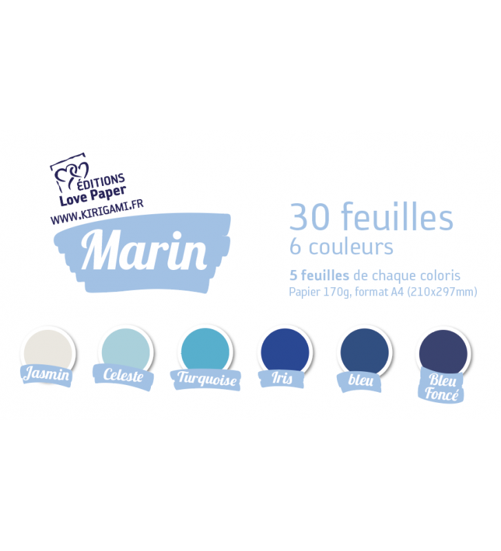 - Assortiment de 30 feuilles A4 170g/m² de couleurs marines (6 couleurs, 5 feuilles de chaque).