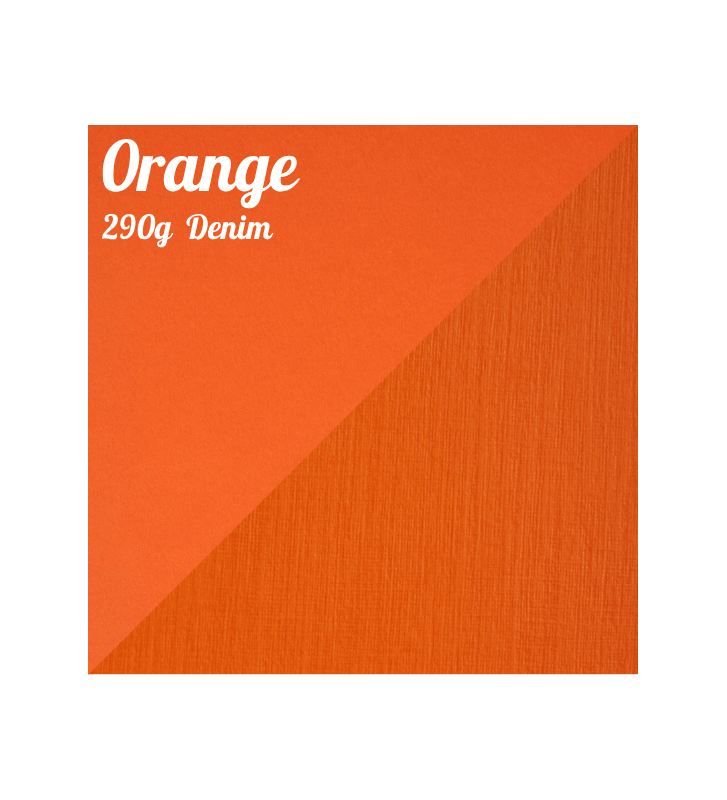 Couleur Orange 290 g/m², format A4, une face lisse et une face texturée "Denim"