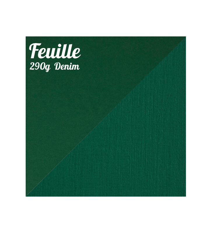 Couleur vert feuille 290 g/m², A4 / A3, une face lisse et une face texturée "Denim"
