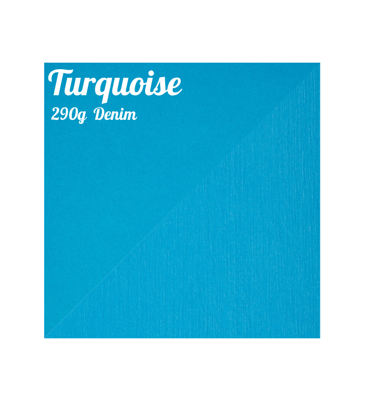 Couleur Turquoise 290 g/m², format A4, une face lisse et une face texturée "Denim"
